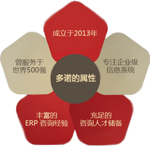 多诺有着丰富的ERP咨询经验,行业涉及制造、零售、电网、石油化工、医药、重工等,曾服务于多家世界 500 强公司的信息系统建设。尤其是在SAP领域,更是有着多年的实施经验,包括 CRM,FICO,BW/BI 等多个模块的先进经验。另外,公司也着力于前沿的开发,发展自身的技术产品,以适应企业不同层面的需要。