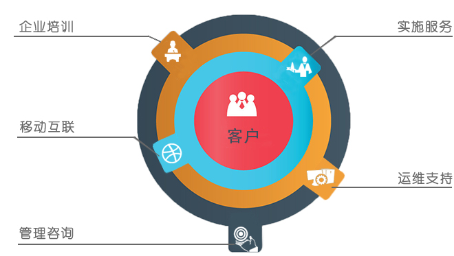 对国际和国内上一流的 ERP、CRM、SCM 系统平台的咨询与实施,帮助中国大、中小型企业进行 完整的信息化建设,提高管理水平,进而提升其在国内外市场的竞争力和影响力。