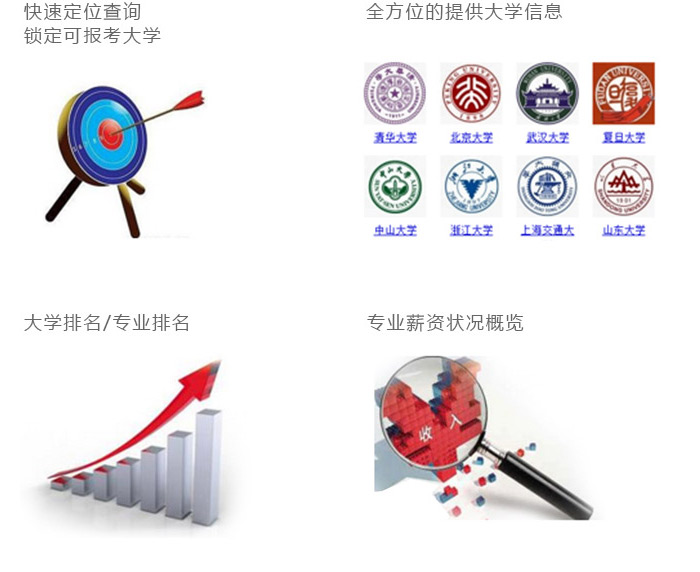 利用 BI 概念为高考用户提供挑志愿决策根据分数快速查询,全方位提供大学信息,包括大学排名、重点院校、专业排名等信息。提供直观的数据展现。